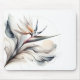 Die Blume Bird of Paradise mit sanften, fließenden Linien ist in Weiß-, Grau- und Warmtönen auf weißem Hintergrund gehalten
