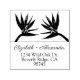 Wählen Sie eine beliebige Farbe für diese selbst-farbige Gummi-Briefmarke aus, in der paradiesische Blume über Ihren Namen in einem extravaganten Drehbuch und Ihre Adresse in einem einfachen, modernen Schriftart stehen. Perfekt, um die Vorderseite eines jeden Einladungs-Umschlags zu Briefmarke.