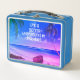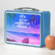 Lassen Sie sich mit dieser farbenfrohen Lunchbox in das Paradies flüstern. Dieses Produkt zeigt ein Bild eines tropischen Strandes mit herrlich braunem Sand, coolen Palmen, entspannenden blauen Ozeanwellen und einem wunderschön bemalten Kanu am Ufer. Verwenden Sie die angepasste Vorlage, um Ihren Namen hinzuzufügen oder eine eigene Nachricht in dieses Feld zu schreiben.