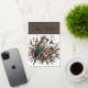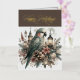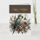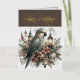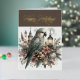 Die süße Eleganz eines schönen Parketts inmitten Vintager Laternen und eines wunderschönen Weihnachtsbouquets mit Pinecones, Poinsettia, Federn, Heiligenbeeren und Weihnachtsbaubles. Mit einer Happy Holidays Typografie, in einer echten Goldfolie mit goldenen Farbpaletten, ganz oben.
