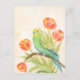 This charming watercolor postcard features a delicate hand-painted parakeet perched among soft blooming tulips against a warm, peaceful background. Created with gentle detail and calming color, the artwork captures the quiet beauty of nature and the sweet spirit of this beloved bird. Perfect for bird lovers, parakeet owners, or anyone who appreciates floral and wildlife art, this versatile postcard is ideal for sending a thoughtful note, adding to a collection, or sharing a simple moment of beauty.