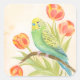 Parakeet with Tulips Quadratischer Aufkleber