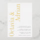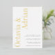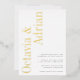 Eine moderne und minimale typografische Hochzeitseinladung mit Ihren Namen in der Serifenschrift von Goldfolie, die senkrecht auf der links Kartenseite läuft. Personalisieren Sie Ihre Hochzeitsdetails, die rechts unten ausgerichtet sind.