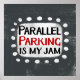 "Parallel Parking Is My Jam" ist ein niedliches Textdesign in Grau mit schwarzem und rotem Text, mit weißer Akzent-Form und weißen, texturierten weißen, weißlichen, weißlichen Punkten, die ihn umgeben.