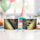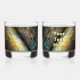 Ein mehrfarbiges, Fraktal-Bild, das gegensätzliches Flickwerk, metallische, parallele Oberflächen auf einem sternenförmigen Hintergrund darstellt. Passen Sie Ihren eigenen Text auf der Rückseite an.