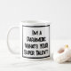 Ein lustiger Slogan auf einer Tasse, die sagt: "Ich bin Paramediker. Was ist DEIN Supertalent?" Tasse für einen Paramedic. Schwarzweißtext.