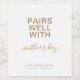 Minimalistisches "Pairs Well With Mother's Day" Weinflaschenlabel in schlichter Weiß- und Goldfarbe mit modernem und elegantem handgeschriebenem Stil. Mit Anlass, Jahr/kurzer Nachricht und Absender/Gifter-Namen anpassen. Ändern Sie die Hintergrundfarbe und/oder Textfarbe in den Anzug Ihrer Vorliebe. Perfekt für den Muttertag.