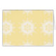 Dieses weiße Mandala sitzt auf einem hellgelben Hintergrund. Die Farben sind friedlich und fröhlich. Teil der Sammlung Fenten Mandala.