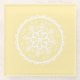 Dieses weiße Mandala sitzt auf einem hellgelben Hintergrund. Die Farben sind friedlich und fröhlich. Teil der Sammlung Bleujenn Mandala.