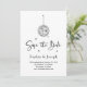Diese glänzende und elegante Schwarz-Weiß-Hochzeit speichern die Dattelkarten in einem modernen und minimalistischen Stil, mit trendiger handgeschriebener Schrift und klassischem Text. In einer subtilen Abbildung wird ein von Hand gezeichnet Retro-Diskoball dargestellt, und Ihr Foto geht auf die Rückseite. Sie können jede Farbe für den Diskoball auswählen, indem Sie in das Design-Tool gehen.