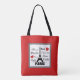 Pariser Textilabbilderin mit Eiffelturm und roten Herzensdekoration in schwarz-weißen Quadraten auf rotem Hintergrund