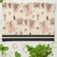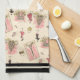 16" x 24" Küchentuch mit einem Bild der rosa, Schwarzen und Goldchicdamen und der vorstehenden Sehenswürdigkeiten in Paris auf Beige. Es gibt L'arc de Triumphe, der Eiffle Turm und die schöne Basilika vom Sacré Cœur auf dem Gipfel von Montmartre. Schwarze Streifengrenzen.