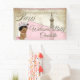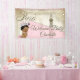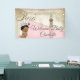 Pariser Babyduschbanner mit bezauberndem Afroamerikaner-Baby-Mädchen, das eine hübsche Krone und Perlenkette auf einem wunderschönen Vintagen rosa Pariser Hintergrund trägt. Dieses niedliche Pariser Babyduschbanner lässt sich einfach an Ihre Veranstaltung anpassen, indem Sie einfach den gewünschten Text hinzufügen.