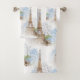 Ein reizendes Bild des Eiffel-Turms von der Paris-Ausstellung im Jahre 1889 zusammen mit schönen blauen und weißen Vintagen Hydrangeas auf Weiß macht ein schönes Badtuch-Set oder gerade das Handtuch, wenn Sie bevorzugen. Vervollkommnen Sie für den Liebhaber von Paris oder von reizenden Sachen. Zusammenpassende Einzelteile und andere Vintage Paris-Entwürfe sind in meinem Zazzle Speicher verfügbar.