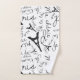 "Paris charm" ist ein Badehandtuch-Set mit Waschlappen, Handtuch und Badetuch. Der Hintergrund ist weiß mit schwarzen Wörtern, die auf Französisch geschrieben sind. Stilvoll und einzigartig, kaufen Sie noch heute Ihr Badetuch-Set!