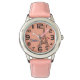 Kinderuhr aus Edelstahl mit rosa Lederarmband