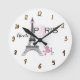 Paris Eiffel Tower Pink Poodle Chic Personalized Runde Wanduhr