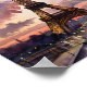 A captivating watercolor painting of the Eiffel Tower in Paris, France, illuminated against a dramatic twilight sky. Soft lavender, rose, and golden tones blend with expressive clouds, creating a romantic and atmospheric Paris cityscape. The tower’s intricate iron latticework glows warmly as evening lights reflect on the quiet streets below, capturing the magic of the French capital at dusk. Inspired by vintage European travel posters, the design combines classic Parisian elegance with the fluid textures of watercolor art. Every detail—from the glowing lamplights to the sweeping pastel sky—evokes the timeless charm of one of the world’s most iconic landmarks. This piece celebrates France’s architectural beauty, cultural heritage, and the artistry of travel illustration. Custom text is available, allowing you to personalize the artwork for a unique Paris memento or to complement a curated collection of European landmarks. Perfect for showcasing the romance and grandeur of Paris in a refined artistic style.