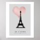 Paris Eiffelturm mit Rose Gold Heart Je T'aime Poster