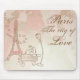 Paris - Die Stadt der Liebe. Ein Paar in der Liebe sitzt auf einer Bank vor dem Eiffelturm. Grafik nach GrafikMarket