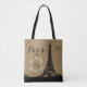 Diese Chic Tan-Taschentasche kennzeichnet eine schwarze Eiffel-Turmgraphik mit "Paris" im modernen Skript. Eine Monogramminitiale, damit Sie sind gerahmt durch eine weiße extravagante Rolle personifizieren. Hintergrund ist eine Imitatleinwandbeschaffenheit im Tan.