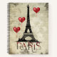 Paris, Eiffelturm und Red Heart Balloons Script Notizbuch