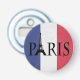 Pariser Textanzeige mit Eiffelturm-Dekoration auf französischem Flaggenhintergrund