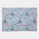 Nahtlose Pariser Textsanleitung mit Eiffelturm, dreifarbigen Herzformen und französischer Flaggendekoration auf blauem Hintergrund zum Valentinstag