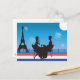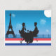 Eine Silhouette eines romantischen Ehepaares, das Wein vor dem Hintergrund des Eiffelturms in Paris trinkt. Feuerwerke explodieren am Himmel. Die Farben der französischen Flagge sind unten. Passen Sie dieses Produkt mit einem Namen oder einer Nachricht an, um es wirklich einzigartig zu machen