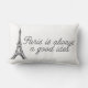 Das Schwarzweiss-Kissen, das durch den berühmten Eiffel-Turm illustriert und auf handgeschriebenen stilvollen Schriftart "Paris geschrieben ist, ist immer eine gute Idee".