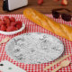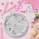 Set von acht 9" Papier Tellern mit einem Bild einer Schwarz-Weiß-Karte von Paris, Frankreich. Siehe dazu passende Süßigkeiten, Espressotasse, Krug, Teekanne und Untersetzer. Sehen Sie sich die gesamte Cancan Plate Kollektion im NAHRUNGSMITTEL/BEV an. | Abschnitt Geschirr.