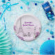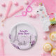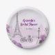 Say bonjour oder merci zu Ihren Gästen mit einem lila Aquarellteller, der perfekt für ein Pariser Themenevent geeignet ist. Der Eiffelturm ist umgeben von hübschen lila Reisen mit einer Pariser Skyline-Silhouette im Hintergrund. Passen Sie den Teller für ein Pariser Brautparty, Hochzeit, Babydusche, Verlobungsfeier, Jubiläumsfeier oder Geburtstagsfeier an. Verfügbar mit passenden Produkten.