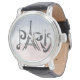 Das perfekte Uhrwerk für den Liebhaber der "Stadt der Lichter". Paris in einem Logo-Stil mit dem Eiffelturm als A auf einem weichen Hintergrund der französischen Fahnen Farben: blau, weiß und rot. Erzähl Zeit auf Pariser Art.