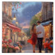 "romantic couple walking street", "paris france flower shop", "travel tourist shopping shops", "classic starry night sky", "in love with romance", "passionate husband wife walk", "boyfriend girlfriend valentines day painting", "red dress and awning", "french parisian city walks", "european europe vacation souvenir"
