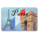 Ikonen von Paris; Eiffelturm, Triumphbogen und die Flagge von Frankreich.