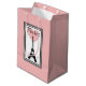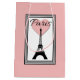Pariser Illustration mit Eiffelturm und Herzdekoration in schwarz-weißen Rechtecken auf rosa Hintergrund