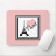 Pariser Illustration mit Eiffelturm und Herzdekoration in schwarz-weißen Quadraten auf rosa Hintergrund