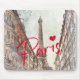 Dieses elegante und stilvolle Mousepad verwendet ein Aquarellbild des berühmten Eiffelturms, das durch eine Seitenstraße zu sehen ist - Erinnerungen von Reisen in Paris und das französische Straßenleben! Das Wort "Paris" in leuchtend rot mit einem Herz fügt eine schöne, stilvolle und moderne Touch hinzu - Sie können den Text einfach neu formatieren, löschen, verändern oder verschieben, wenn Sie es wünschen.