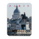 Ein wunderschöner Ausblick auf eine Reitstatue in Paris mit dem Pantheon im Hintergrund, der auf einem Souvenir-Kühlschrankmagnet gedruckt ist.