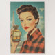 Ein glamouröses Vintage-Poster der 1950er Jahre mit einer raffinierten, roten Frau, die eine luxuriöse Parfümflasche mit der Bezeichnung "PARFUM" trägt. Im Hintergrund erhebt sich der Eiffelturm, der die schicke Pariser Ästhetik mit kühnen Farben, Retro-Mode und klassischer Schönheit verstärkt.