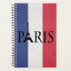 Pariser Textanzeige mit Eiffelturm-Dekoration auf französischem Flaggenhintergrund
