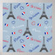 Nahtlose Pariser Textsanleitung mit Eiffelturm, dreifarbigen Herzformen und französischer Flaggendekoration auf blauem Hintergrund zum Valentinstag