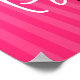 Das Wort "Paris", mit dem "i", ist auf einem Eiffelturm-Set mit dunkelrosa und hellrosa Streifen im Hintergrund dargestellt.
