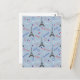 Nahtlose Pariser Textsanleitung mit Eiffelturm, dreifarbigen Herzformen und französischer Flaggendekoration auf blauem Hintergrund zum Valentinstag