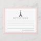 Sammle Worte der Weisheit und Ratschläge für die Braut, mit diesen süßen Karten zu sein. Das schicke Rosa und Schwarz-Design mit einer Eiffelturm-Silhouette und "Ratschlag für die Braut" oben. Passen Sie auf Wunsch den Namen der Braut an, legen Sie einen Stapel am Veranstaltungseingang ab, geben Sie ihn durch oder verließ einen an jedem Ort. Macht einen schönen Sake für die Braut, wenn sie in einem Buch, einer Speicherbox oder einem Bindemittel kompiliert wird!