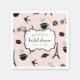 Diese eleganten, rosa und weißen Servietten in Rosa und Weiß zeichnen sich durch eine Mischung aus Silhouetten, Makaronen, Fahrrädern, Croissants, Rose, Vögeln und Kaffeebechern aus, die sich mit dem Namen, der Art und dem Datum der Veranstaltung in der Mitte abstimmen.