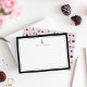 Unsere schicken Pariser inspirierten personalisierten Schreibtischplatten-Karten verfügen über einen klassischen schwarzen Rahmen, eine winzige Schwarz-Eiffelturm-Illustration und Ihren Namen, Ihr Monogramm oder Ihre Personalisierungswahl. Die Karten wechseln sich zu unserem Pariser Romantik-Muster ab, mit winzigen Vögeln, Croissants, Makaronen, Rose, Kaffeetassen und dem Eiffelturm auf einem blassrosa Hintergrund.