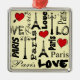 Pariser Textgestaltung für den Valentinstag mit roten Herzformen, Eiffelturm und Straßenlampen, die auf gelbem Hintergrund dekoriert sind