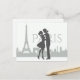 Paris Skyline Eiffel Tower Couple Liebe Grau, Weiß Postkarte