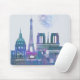 Paris Skyline Watercolor Splash Blue von Fab Funky. Hier finden Sie die berühmten Pariser Sehenswürdigkeiten im Aquarellstil.